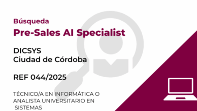 Búsqueda Ref 044/2025 DICSYS Ciudad de Córdoba Busca: Pre-Sales AI Specialist Descripción: Somos una compañía latinoamericana con más de 17 años de experiencia